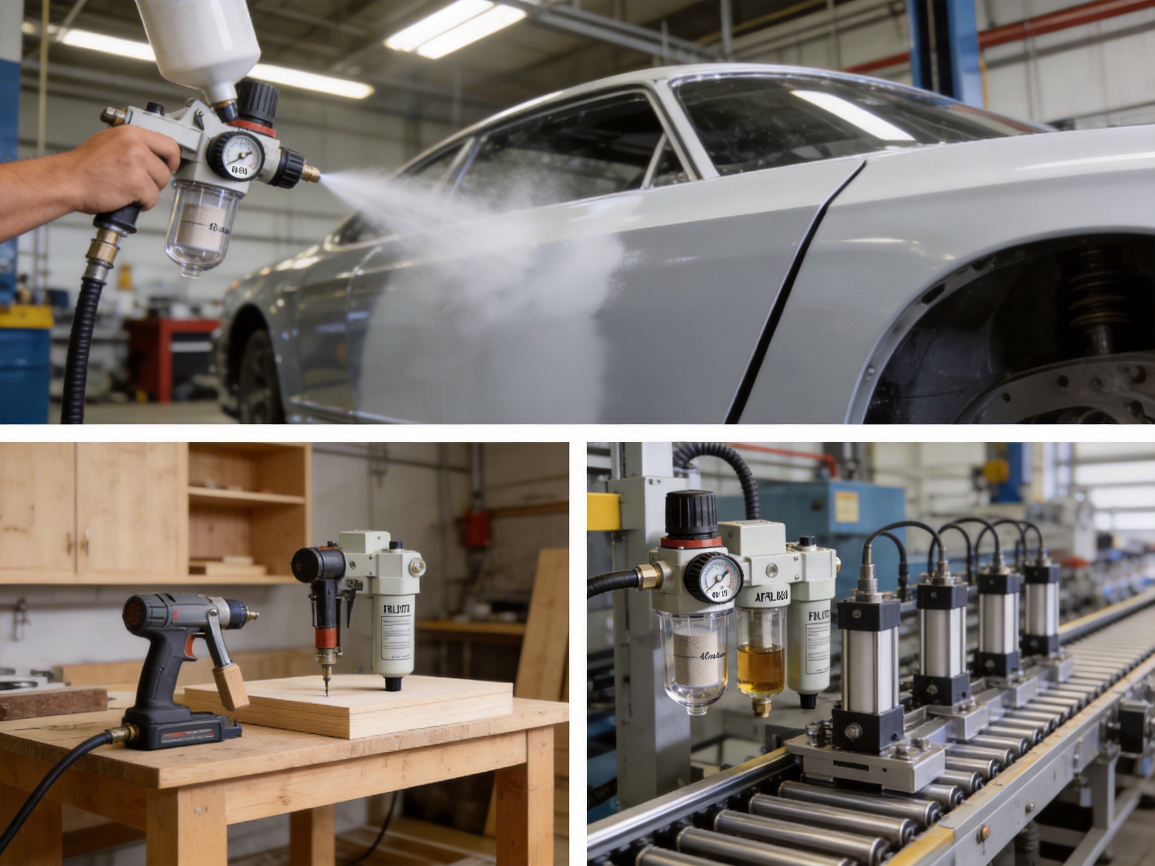 Woodworking applications (e.g., furniture manufacturing, cabinet making) often involve delicate spray finishing. The AFRL980’s low-pressure capability (10–30 PSI) is ideal for fine mist applications, while its high filtration precision prevents dust from clogging spray gun nozzles. The unit’s compact size is also a plus for small woodworking shops, where space is limited.