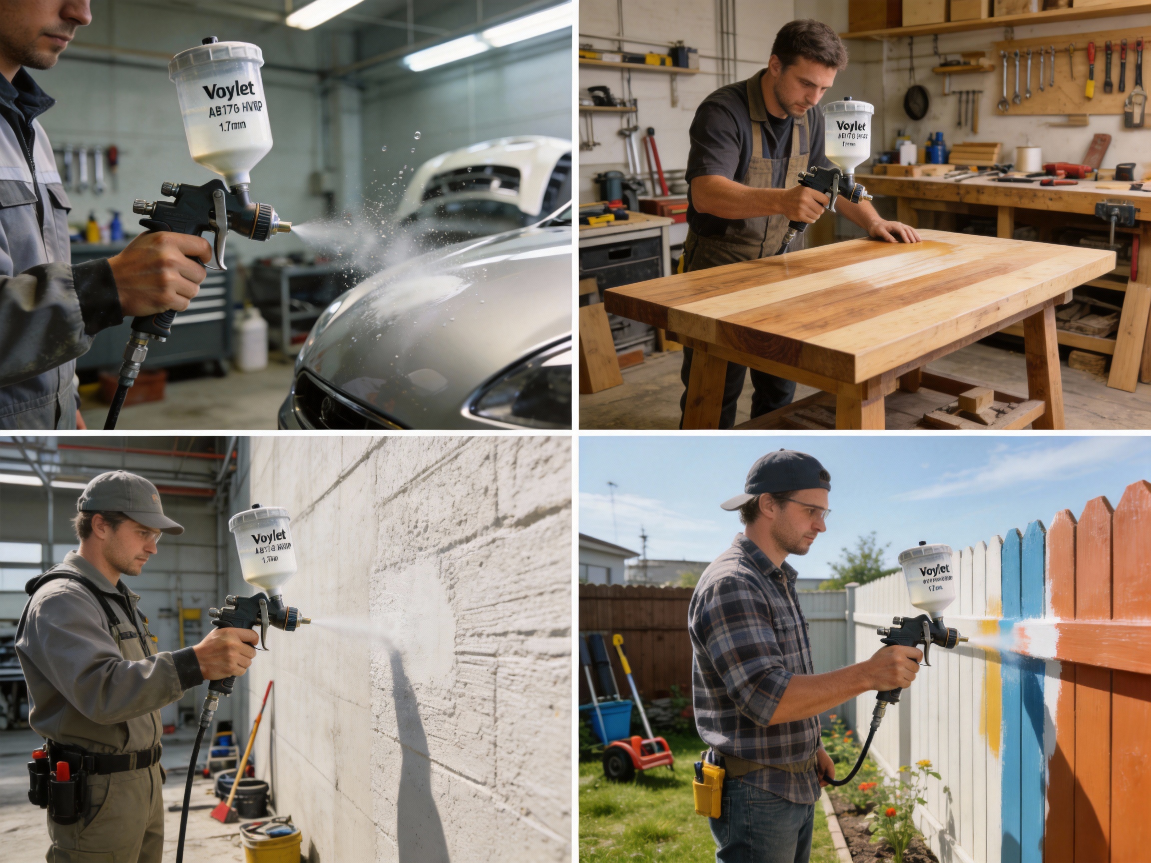 The Voylet AB17G has had a significant impact on various industries, thanks to its reliability and performance. Here are a few examples of how the product is used: - Automotive Repair: Body shops use the AB17G for applying clear coats and base coats, as its fine atomization produces a smooth finish that matches factory standards. The interchangeable nozzles allow technicians to switch between different paint types quickly. - Woodworking: Furniture manufacturers rely on the gun for applying stains and lacquers, as the gravity feed design minimizes overspray and reduces waste. The large cup capacity is ideal for finishing large pieces of furniture. - Construction: Contractors use the gun for applying textured paints and primers on walls and ceilings, as the 2.0 mm nozzle handles thick materials effectively. The durable alloy construction stands up to the harsh conditions of construction sites. - DIY and Hobbyists: Homeowners and hobbyists appreciate the gun’s ease of use and versatility, as it allows them to tackle projects like painting cabinets, fences, or furniture without professional training.