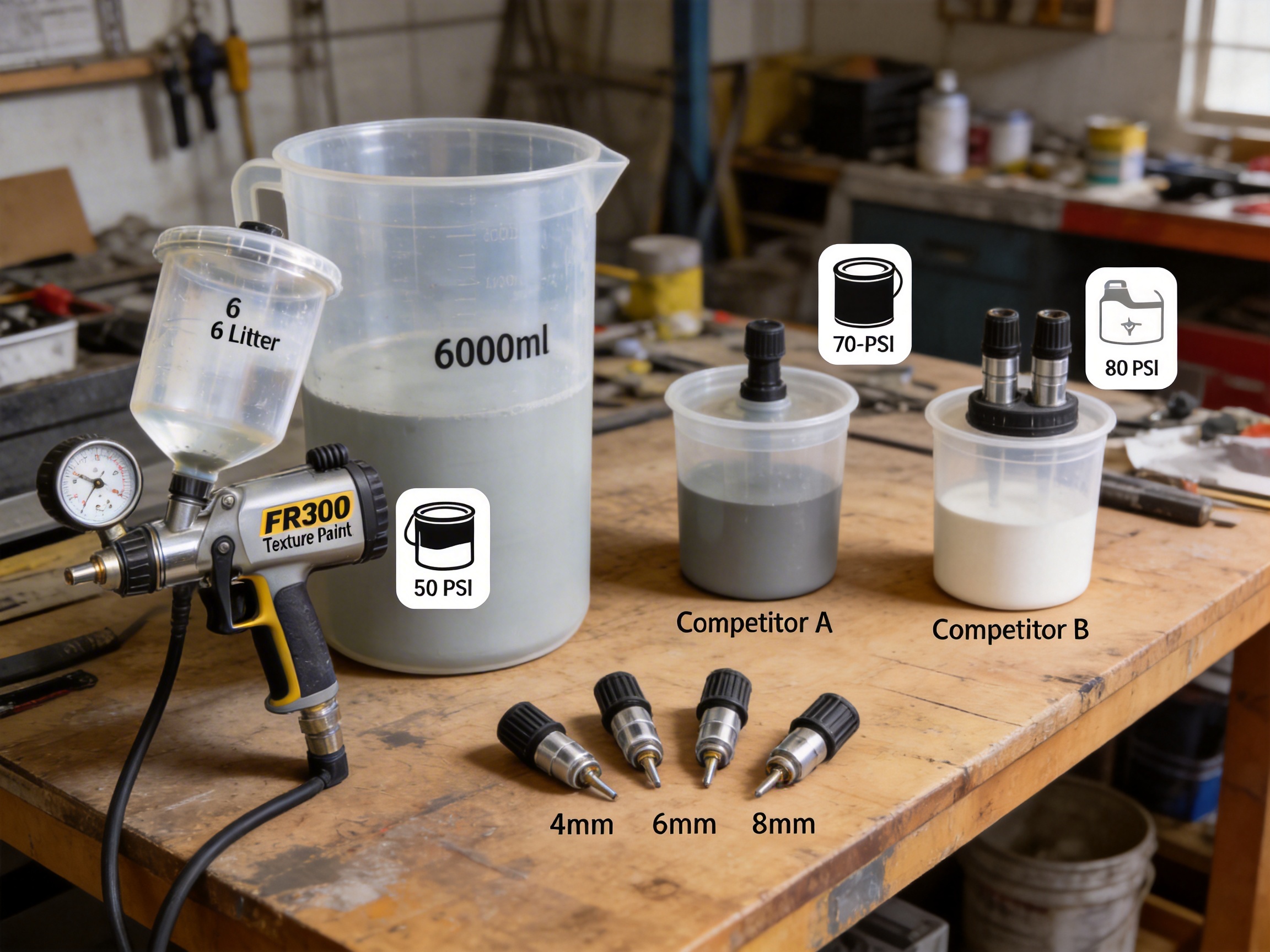 | Specification | FR300 Texture Paint Spray Gun | Competitor A | Competitor B |