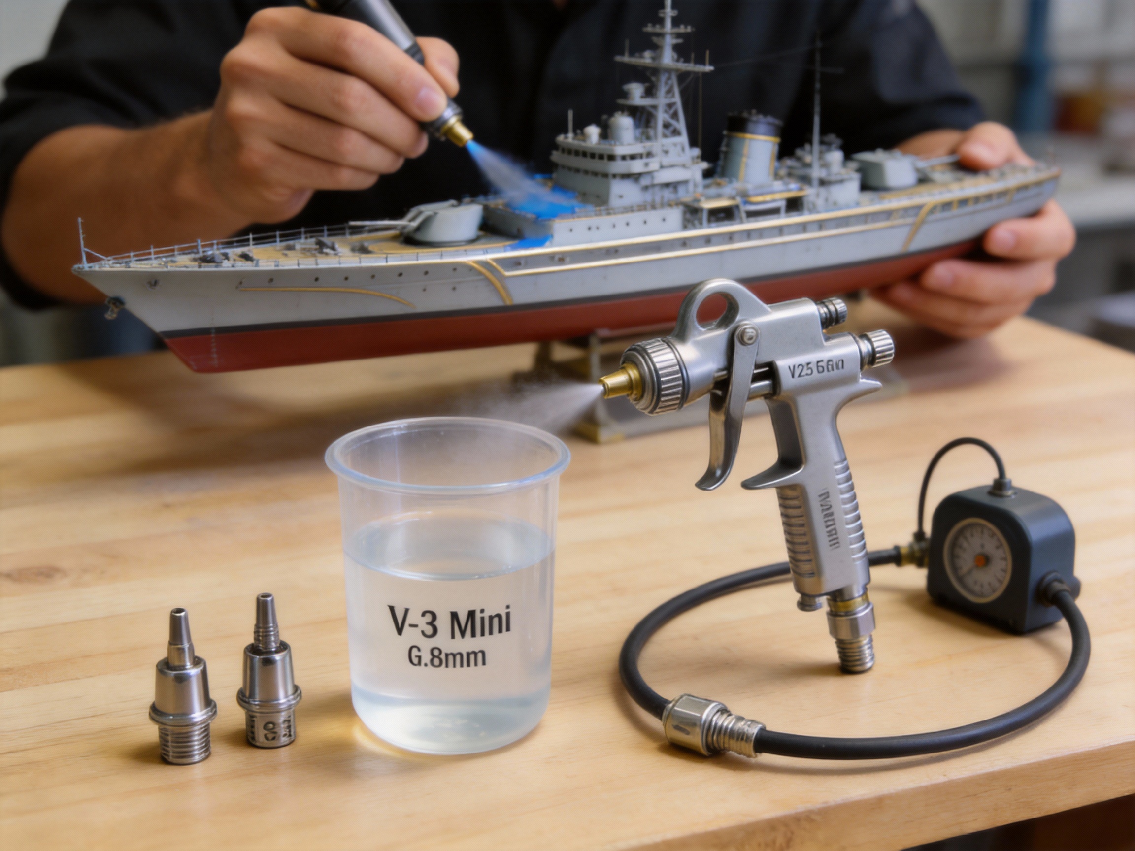 Hobbyists in the United States use the V-3 for model building projects, such as painting scale model planes and ships. The 0.5 mm nozzle allows for ultra-fine detailing, such as painting cockpit windows or ship hull lines. One hobbyist commented: “The V-3 is perfect for model building. It’s easy to use, and the finish is smooth—no more brush strokes or uneven coverage. I’ve used other mini spray guns before, but the V-3 is by far the best.”